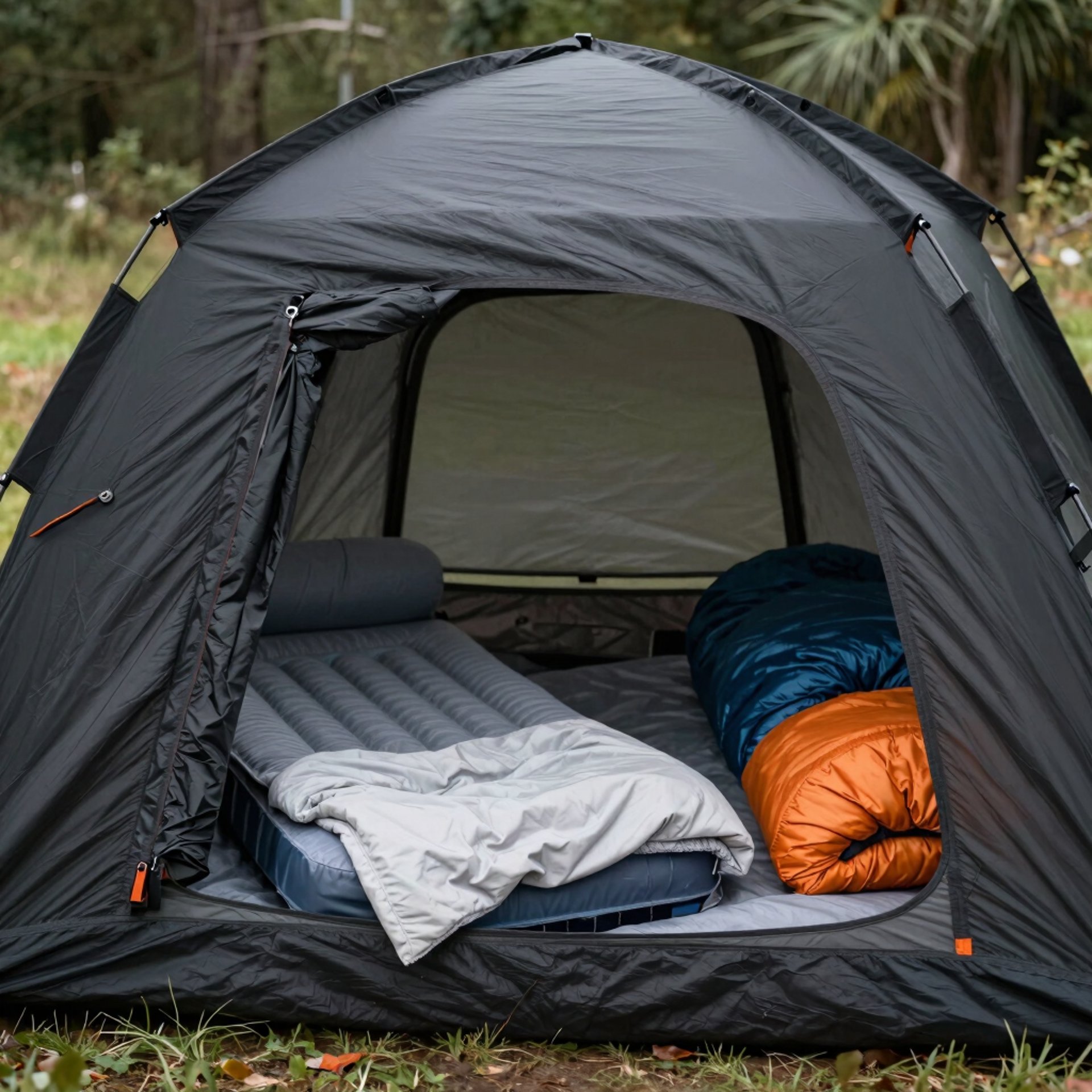 Air mattress: Use sleeping pads or air mattresses that provide cushioning and insulation from the ground. Sleeping pads offer portability and ease of setup, while air mattresses can provide a more cushioned feel. Don’t forget a pump if you’re using an air mattress!